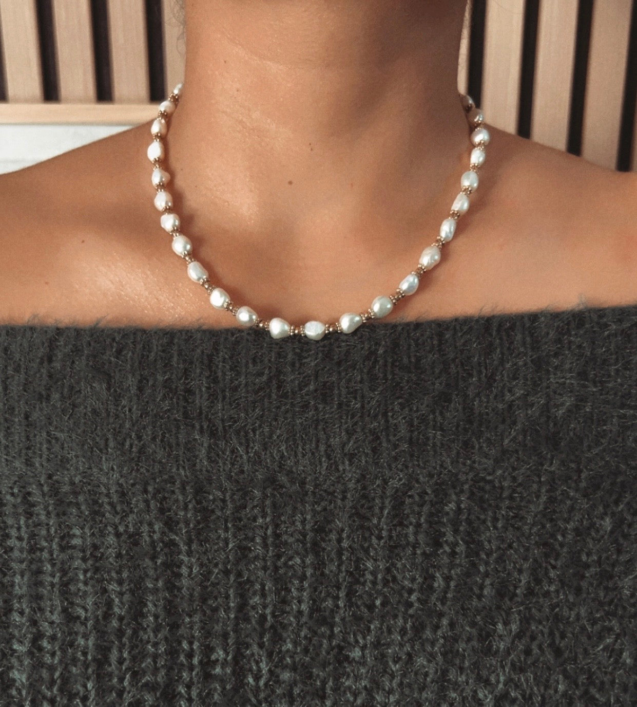 Chaque perle possède sa forme et sa texture propres : c’est ce qui rend chaque collier légèrement différent, et réellement unique.